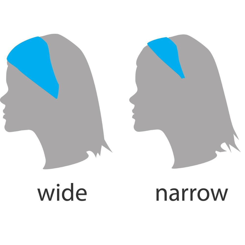 Our headbands are all the same size and have stretch to accommodate different size heads. The circumference of the unstretched band is 17.75 inches and will stretch to around 23 inches. Our Strata fabric headbands are slightly stretchier.