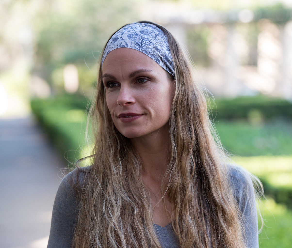 The best way to wear our headbands, is to pull down completely over your head. Take the edge of the band and then pull it up till it rests comfortably on the high forehead. The pocket with the logo is generally worn in the back. The band can be worn open and wide which is great for holding back hair, absorbing sweat, holding in earbuds and keeping ears warm in the cool weather. Bands can also be folded and worn higher on the head.